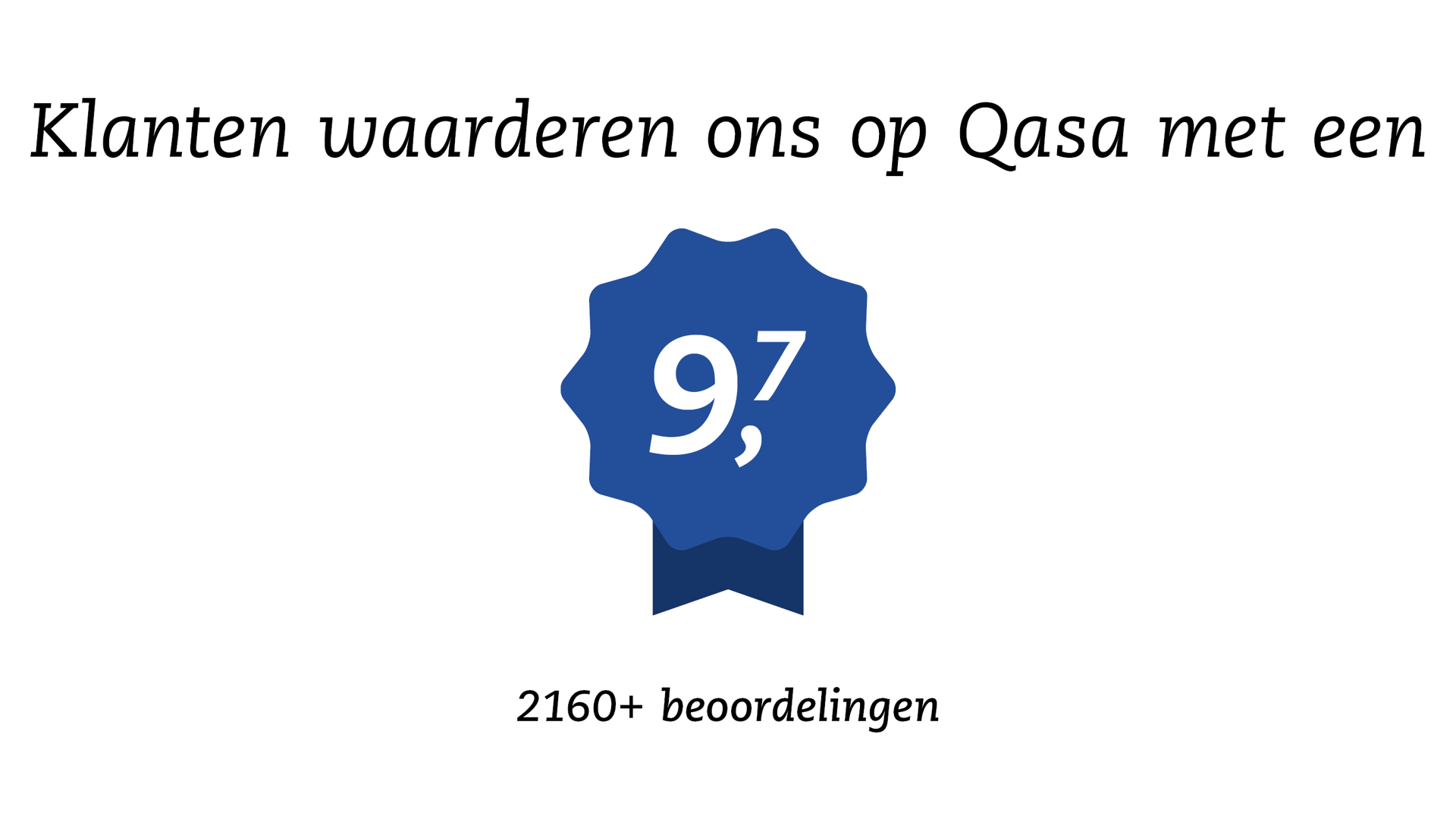 - Hoogste tevredenheid: 2313 klanten geven ons gemiddeld een 9.7